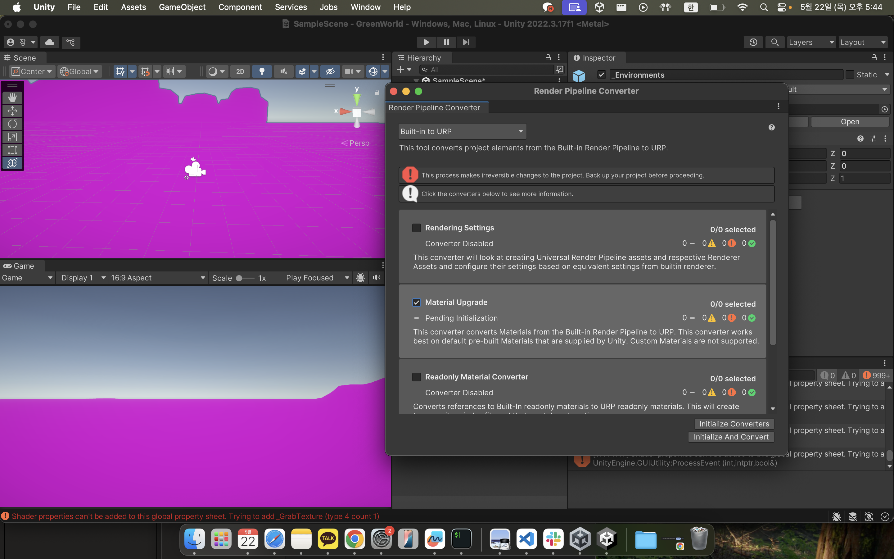 URP로 프로젝트를 생성한 후 사용할 에셋을 불러왔을때 이렇게 분홍이 되는이유는