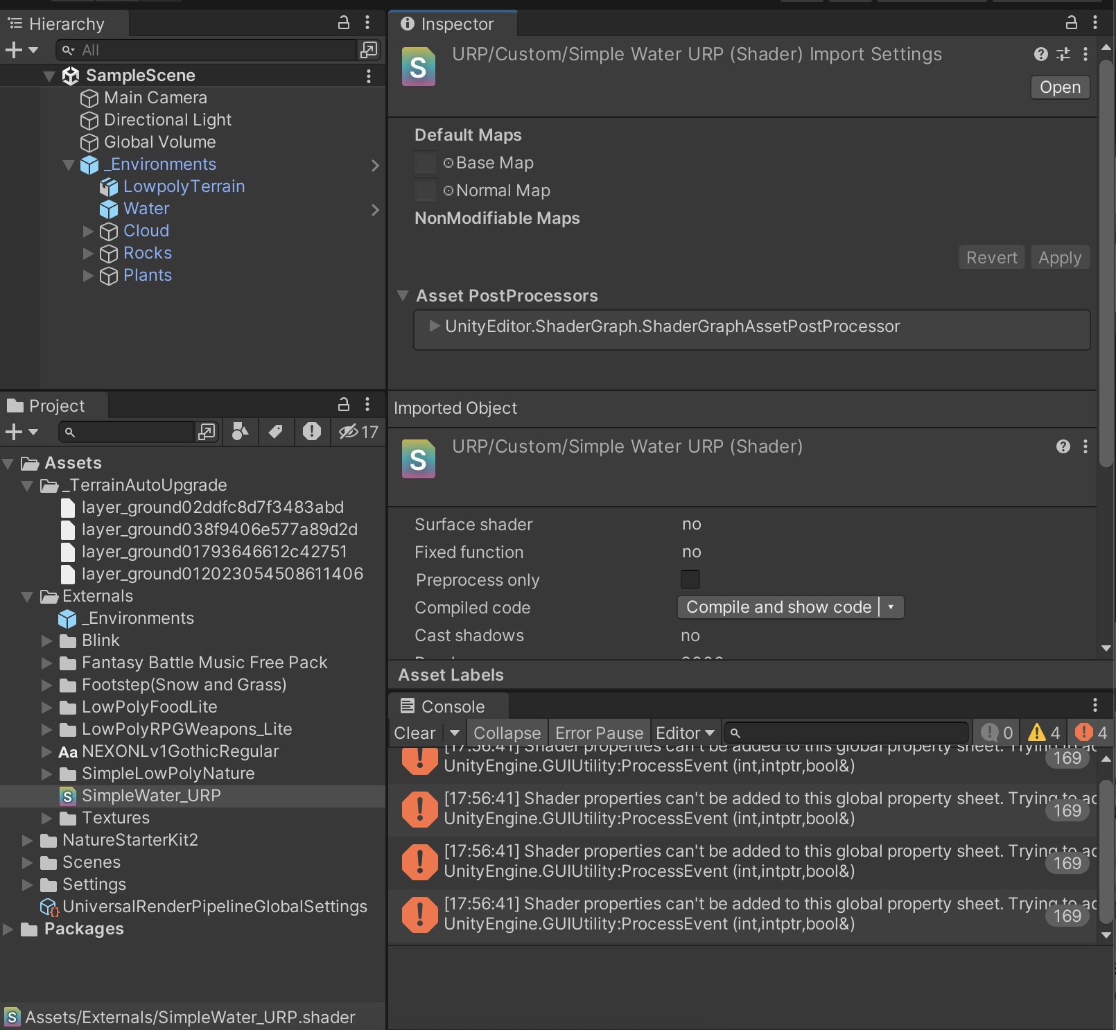 그러면 이렇게 URP/Custom/Simple Water URP 와 같이 경로가 뜬다.