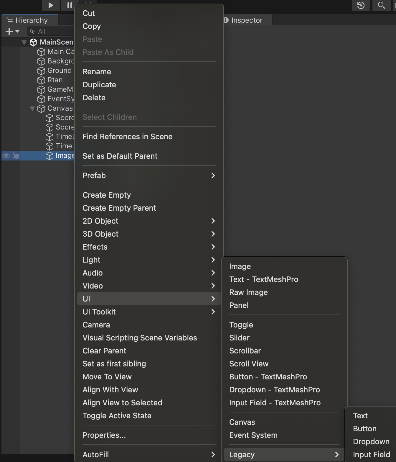 Text추가를 위해 Image우클릭>UI> Legacy> Text
