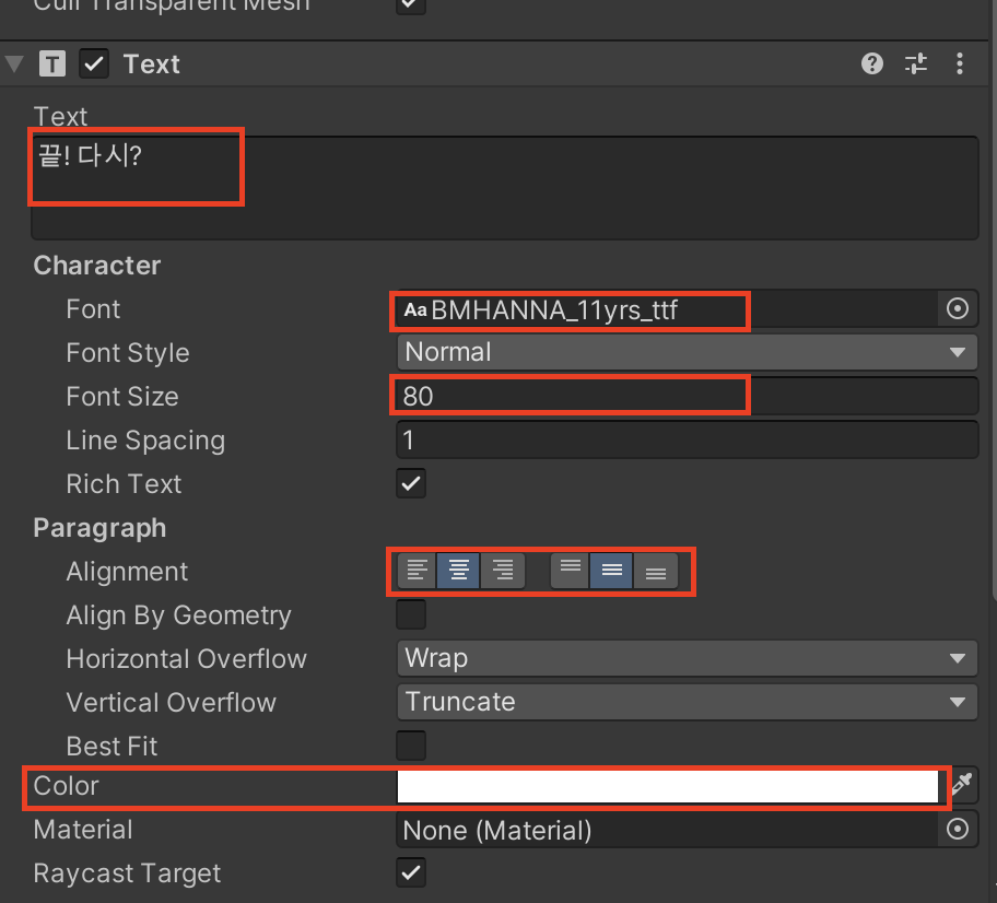 게임오버가 됐을 때만 이 EndPanel이 나와야 하므로 이름 옆의 체크박스를 체크해제해준다.