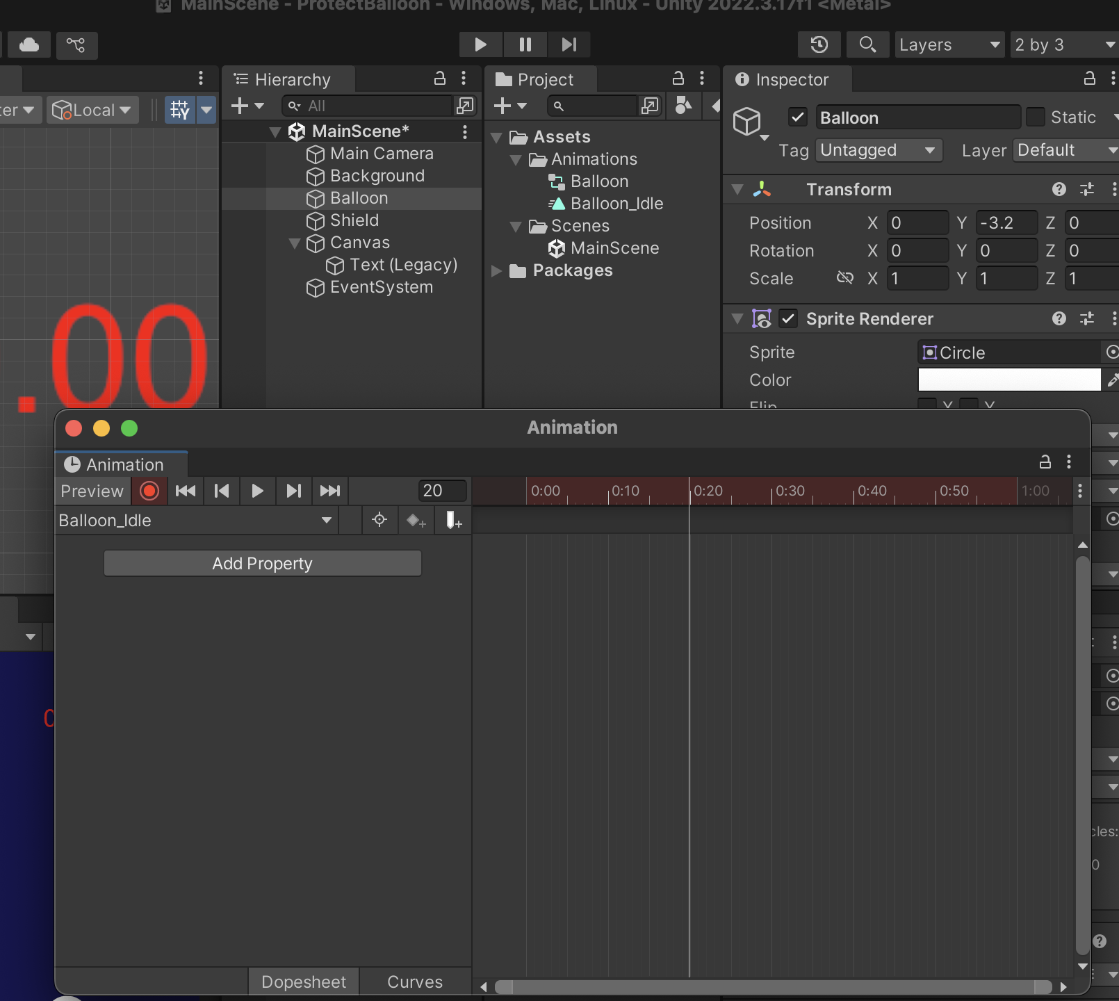 그리고 Animations > Create > Animation 생성(이름: Balloon_Idle)