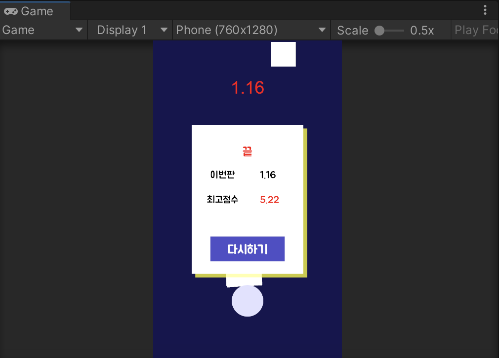 - 최고점수가 현재점수가 작다면 다시 지금 점수를 최고점수로 저장을 해주어야함.