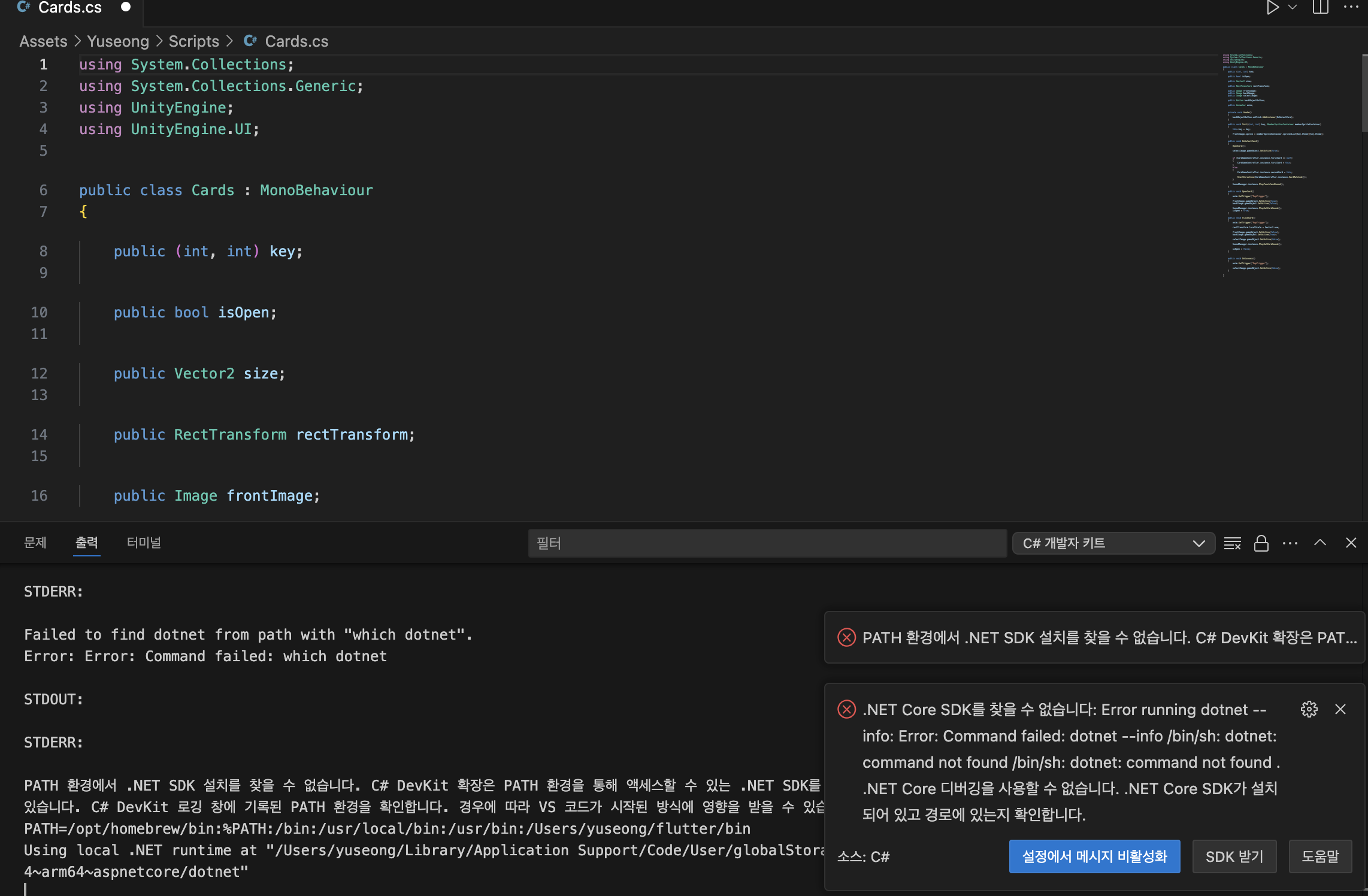 문제가 꽤 있었는데 검색해서 해결한 부분은 SDK깔기(dotnet)이었다.